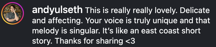 connection, the edges of a feeling, and meanders toward it, toward that